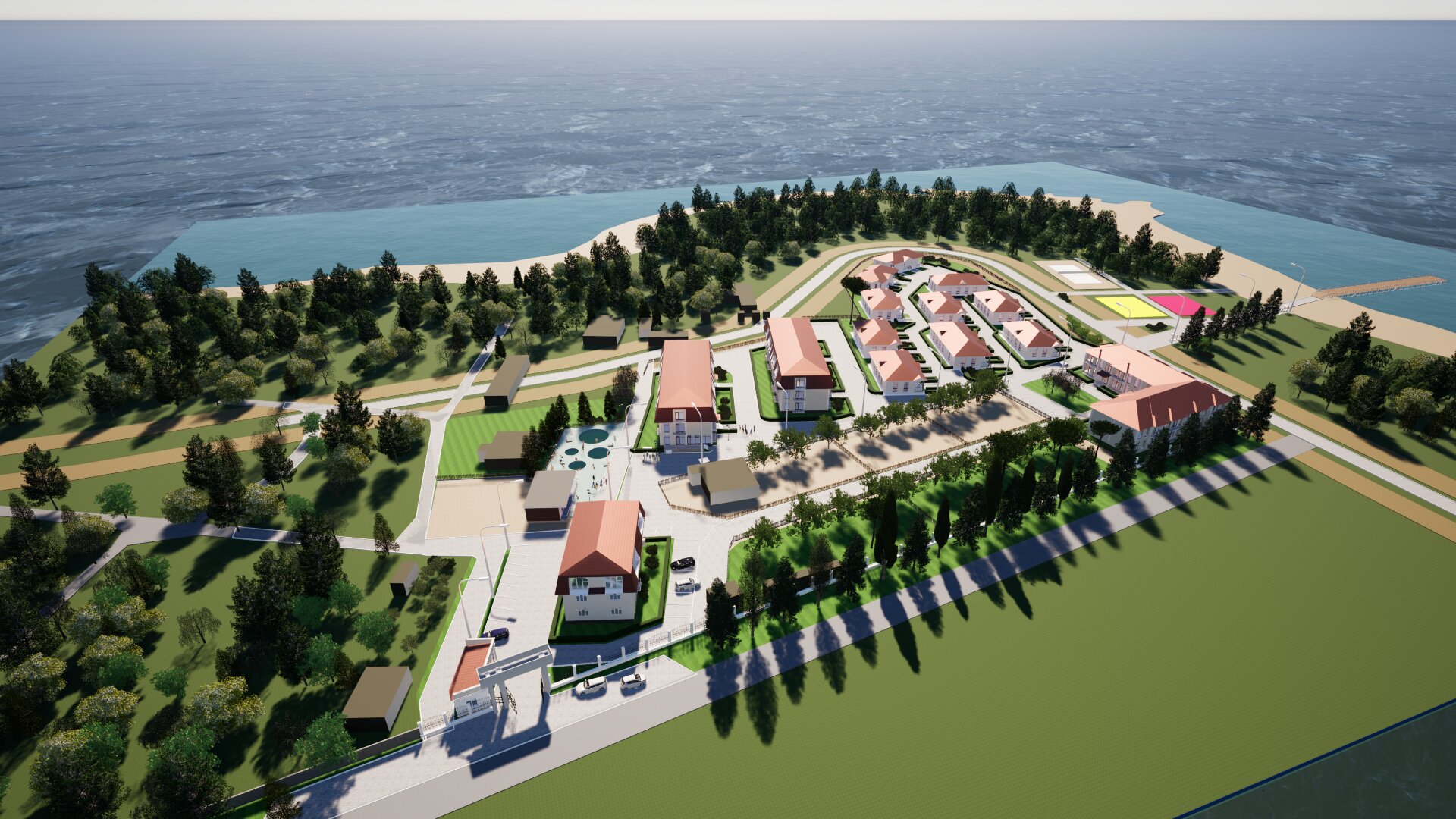 Уникальный пирс, озелененная территория, теннисный корт, воркаут-площадки, современные детские площадки, собственные скважины артезианской воды